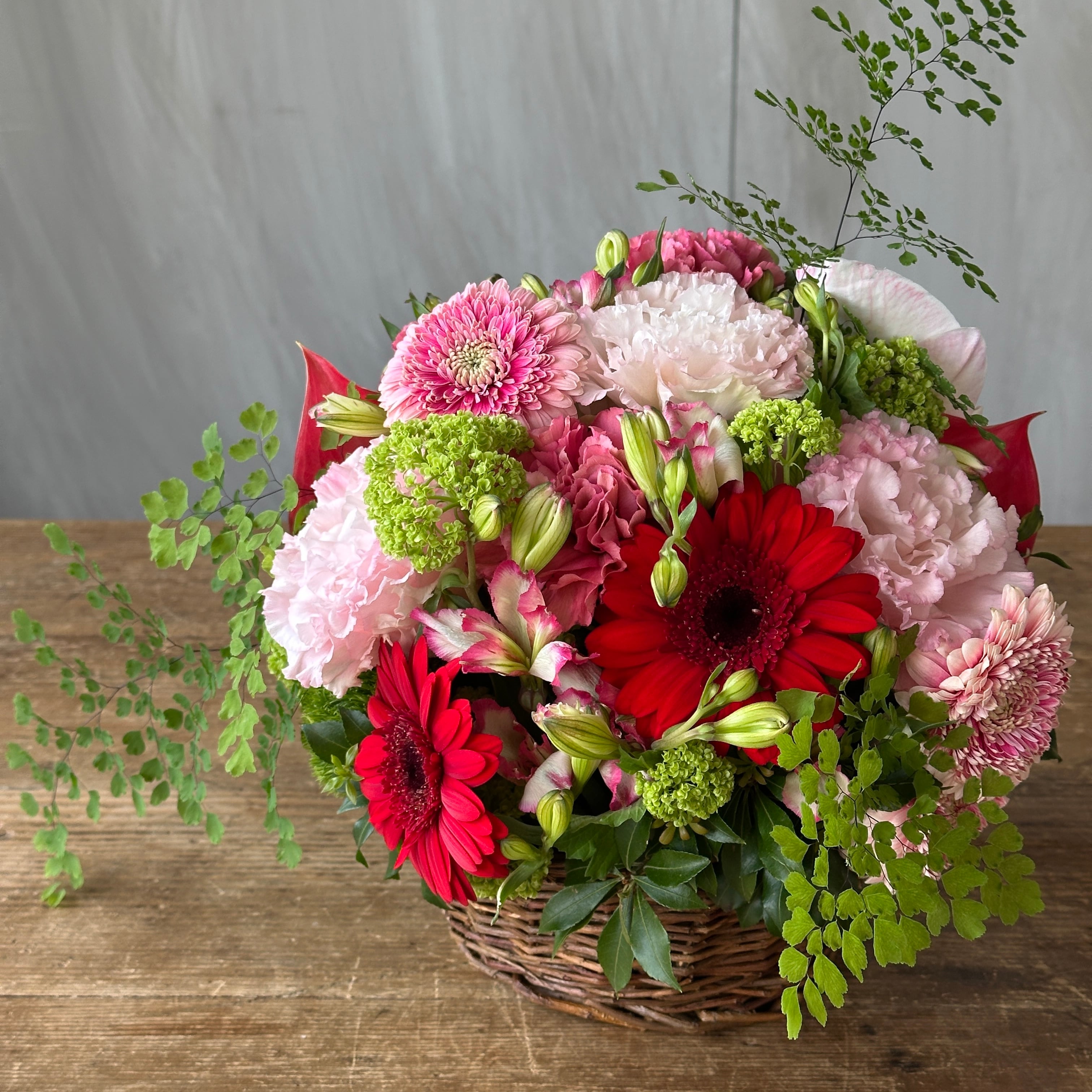 人気のバスケットに丸くアレンジしております
