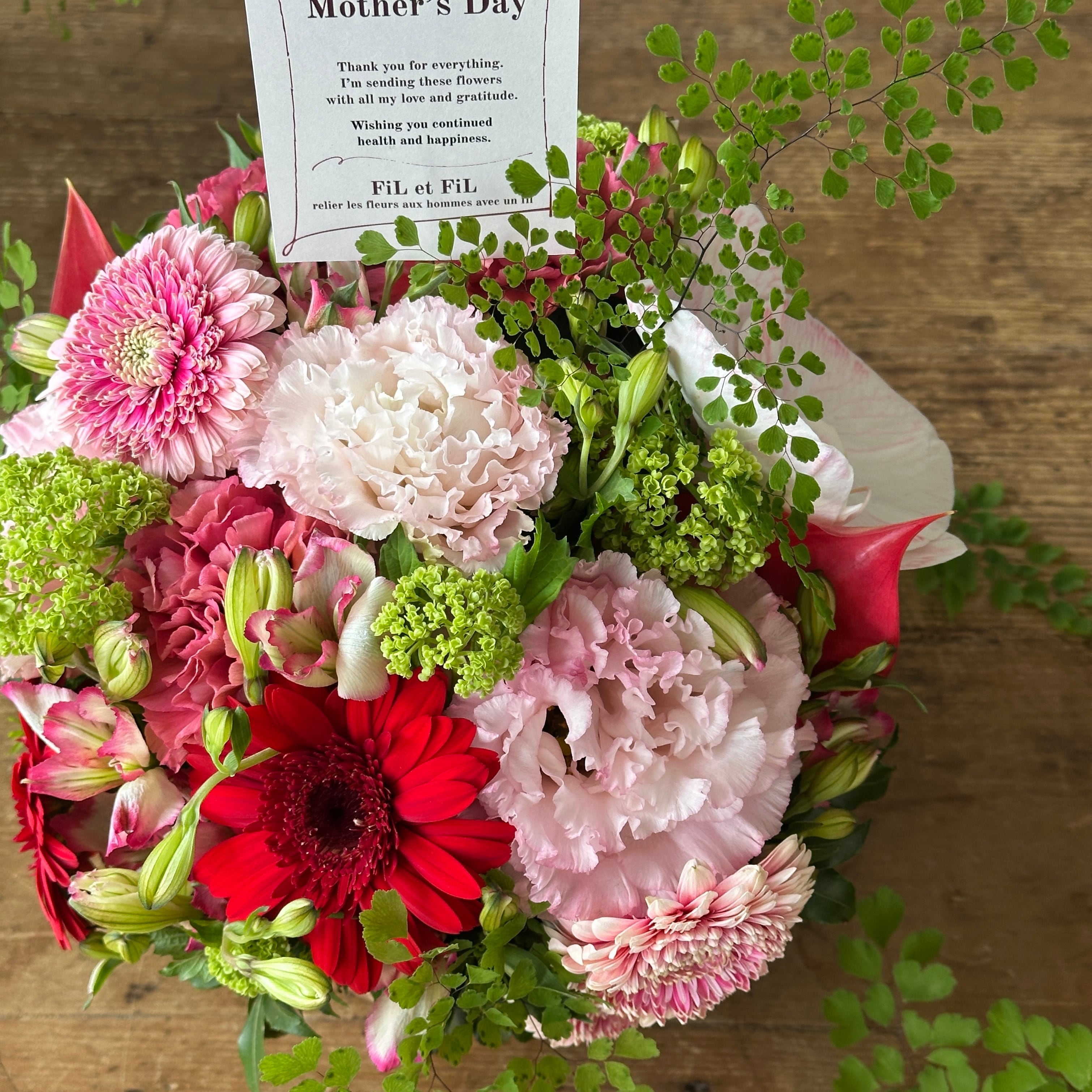 「thanks mothersday」のメッセージカードをお付けし、