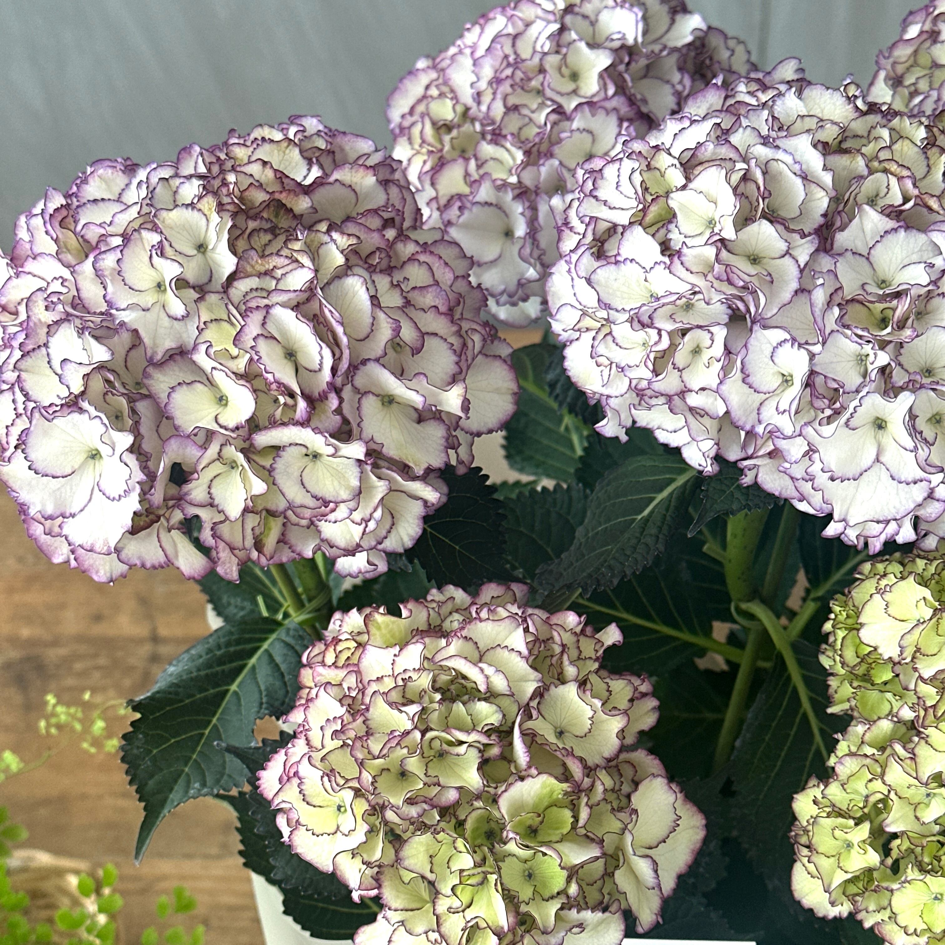 ラブレターは、フレッシュなライムグリーンにピンクの縁取りフリンジが美しいハイドランジアです。