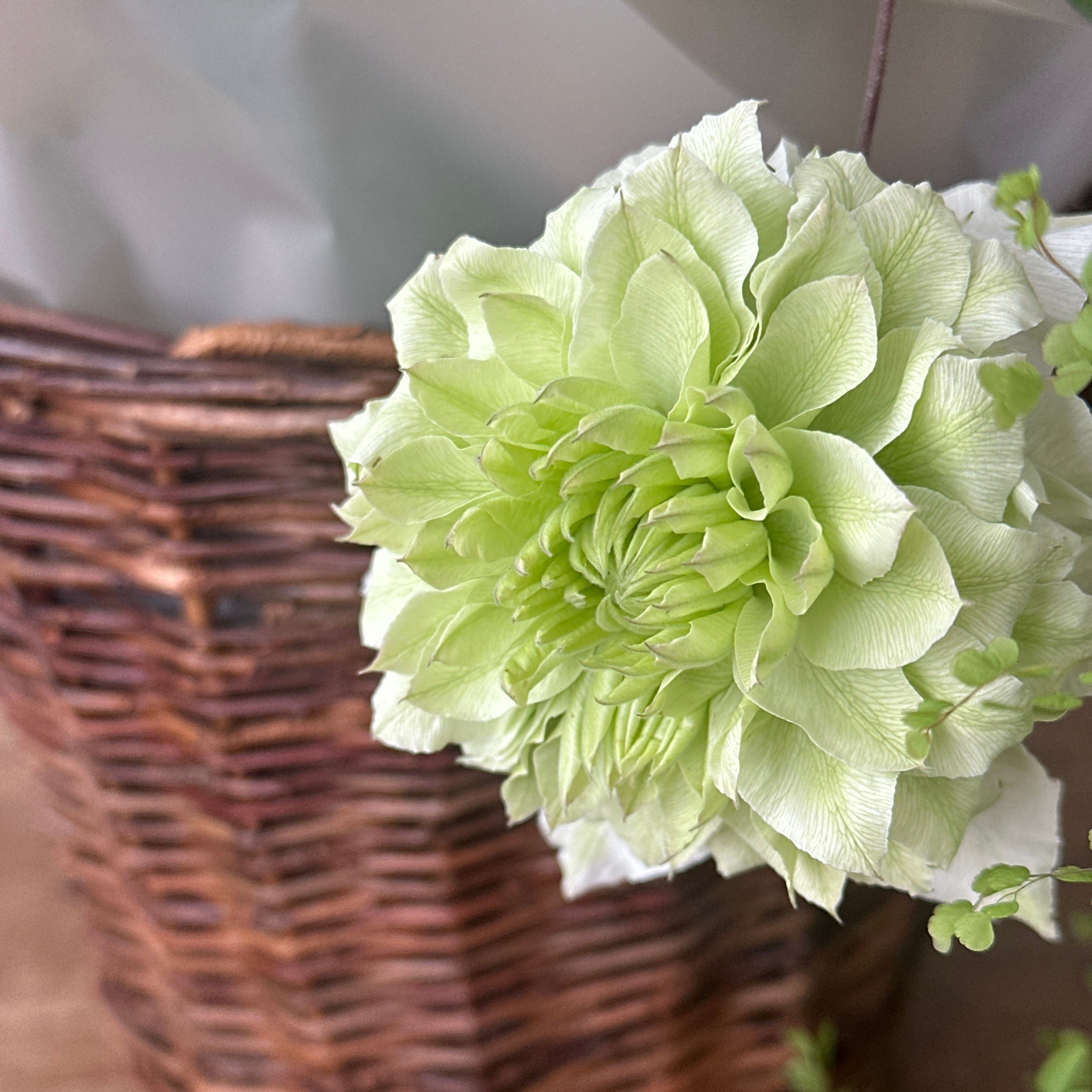 クレマチス「白万重(しろまんえ)」は、淡い黄緑色から純白へと変化する、幾重にも重なった上品な八重咲きが魅力の品種です。フロリダ系(新旧両枝咲き)に属し、花持ちが非常に良く、次々と花を咲かせる「多花性」としても知られています。